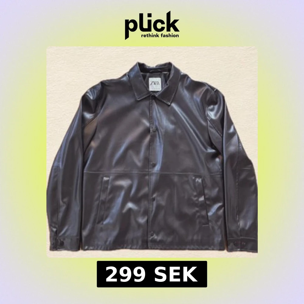 Stilren svart skinnjacka från Zara med klassisk krage och raka linjer. Jackan har knäppning framtill, två sidofickor och en clean look som passar till allt. Materialet är glansigt och ger en modern vibe.