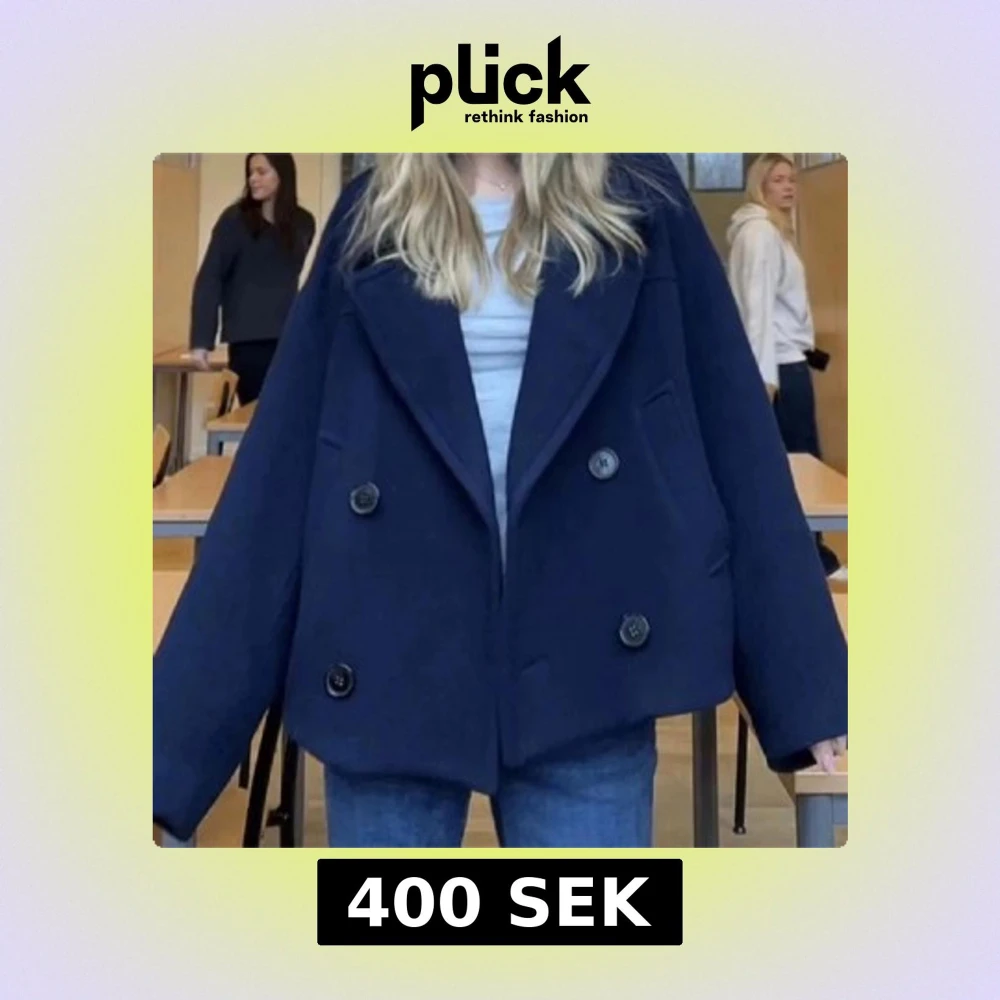 Snygg mörkblå kappa med stora knappar framtill. Jackan har en oversized passform och långa ärmar, perfekt för höst och vår. Den är stilren och enkel att matcha med olika outfits. Finns ett medelstort hål i armbågen🩷