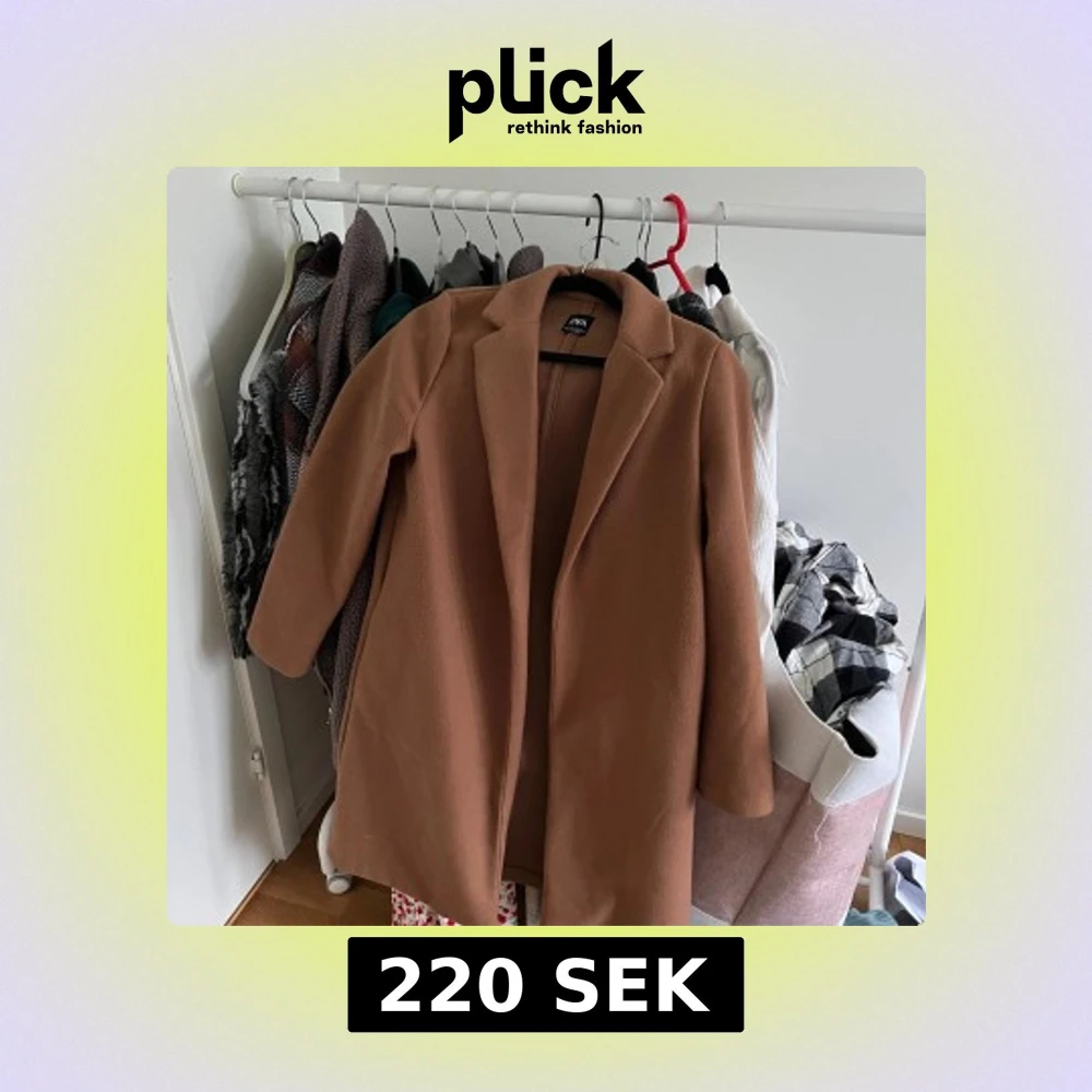 Säljer en snygg brun kappa från ZARA med klassisk krage och rak passform. Jackan har långa ärmar och stilren design utan synliga knappar eller dragkedja. Perfekt för dig som vill ha en tidlös och trendig look.
