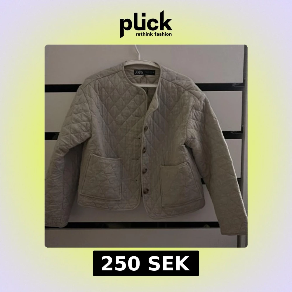 Säljer en beige quiltad jacka från Zara storlek S med knappar framtill och två stora fickor. Jackan har en rund halsringning och långa ärmar. Perfekt för en stilren look. Har en liten defekt framtill men är inte jätte anmärkningsbar.
