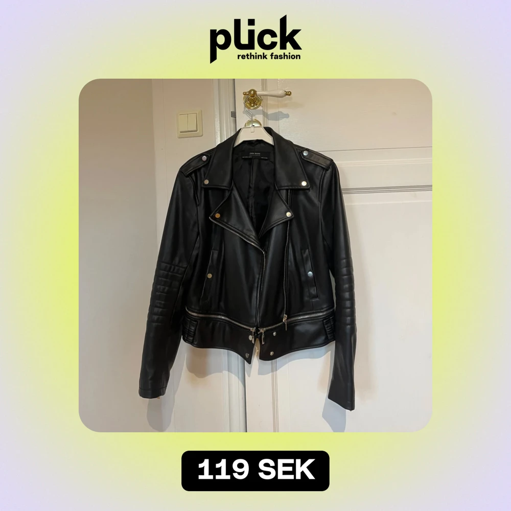 Snygg svart skinnjacka från Zara i mycket bra skick. Den har en cool bikerstil med dragkedja och knappar. Jackan är långärmad och har quiltade detaljer på ärmarna. Perfekt för höst och vår!