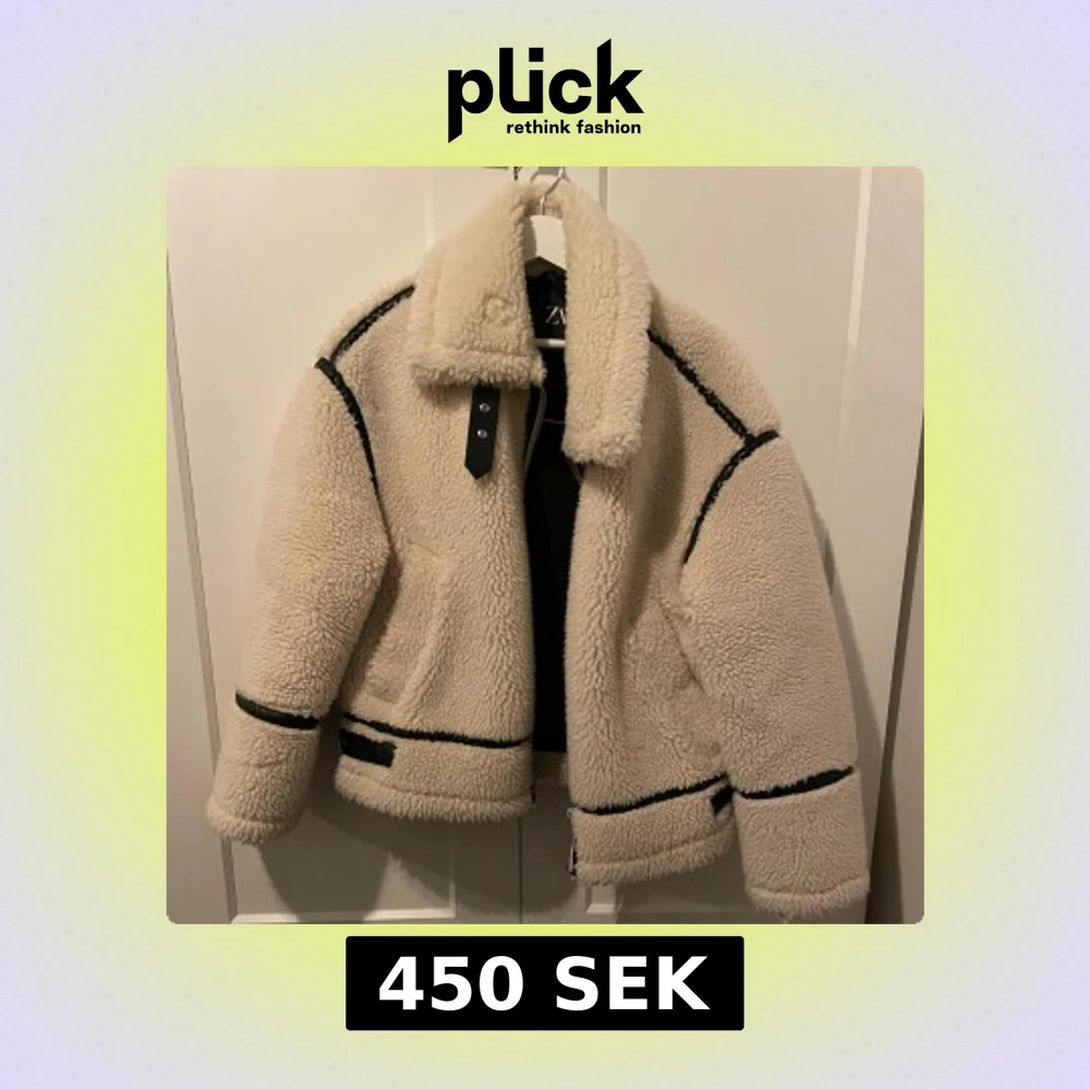 Säljer en vit teddyjacka från Zara med svarta detaljer och stora slag. Jackan har dragkedja, fickor och svarta band längs ärmar och midja. Väldigt varm och mysig, älskar till vintern!!