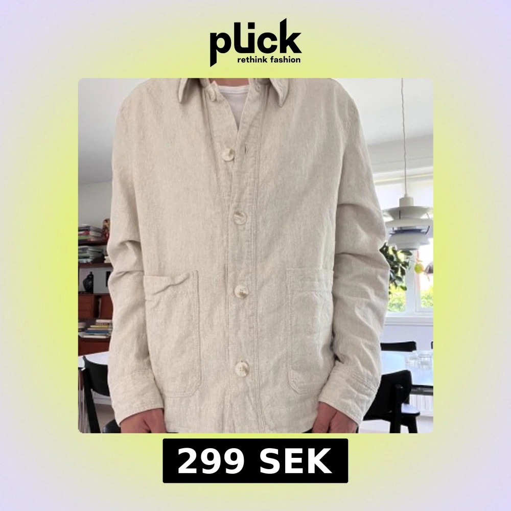Stilren beige overshirt med klassisk krage och stora framfickor. Jackan har knäppning framtill med fyra knappar och är tillverkad i ett grovt bomullstyg. Perfekt för lager-på-lager och enkel att matcha. Använd 1 gång