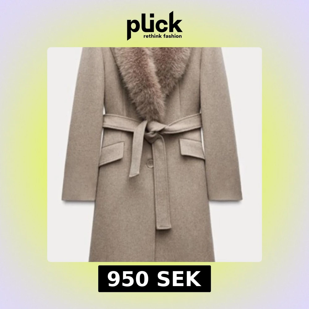 Elegant beige kappa med en lyxig pälsdetalj vid kragen som är avtagbar.🧸