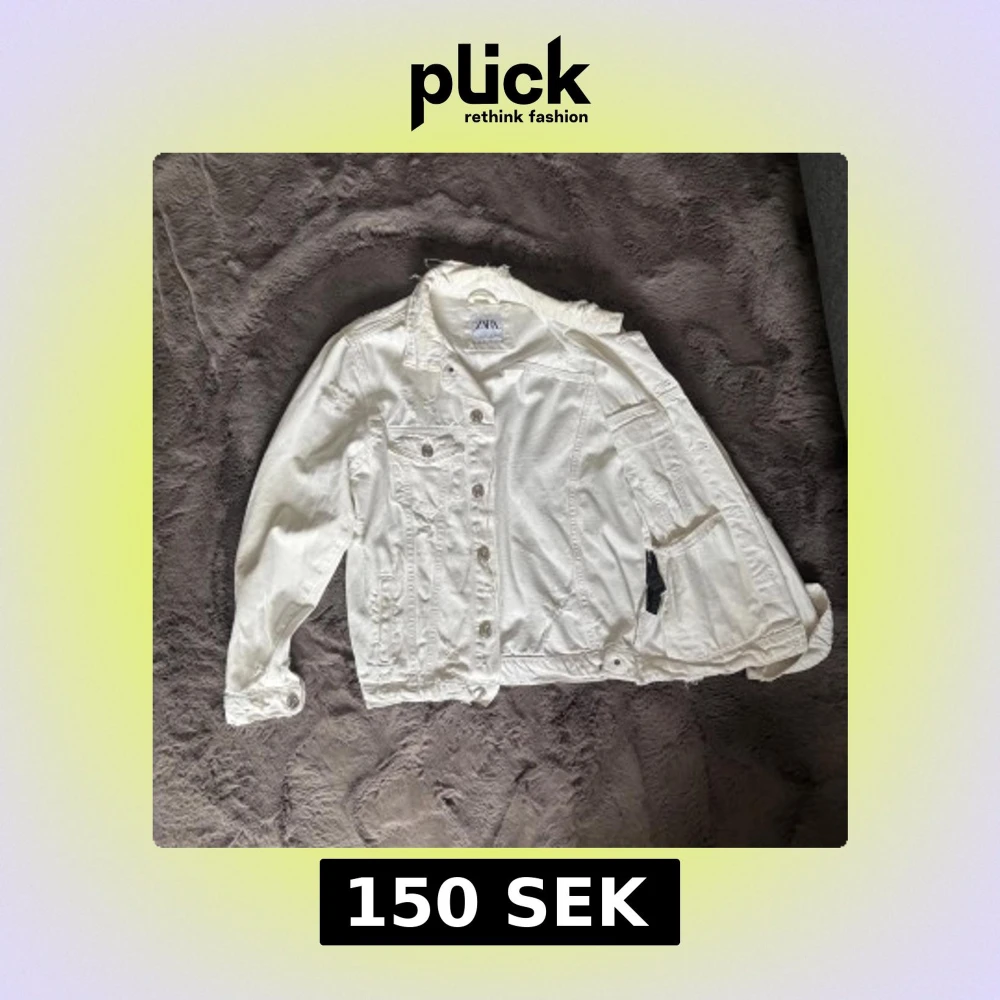 Säljer en vit jeansjacka från Zara i storlek S. Jackan har slitna detaljer vid krage och axlar, klassisk knappstängning framtill och två bröstfickor med lock. Perfekt för dig som gillar en avslappnad och trendig look.
