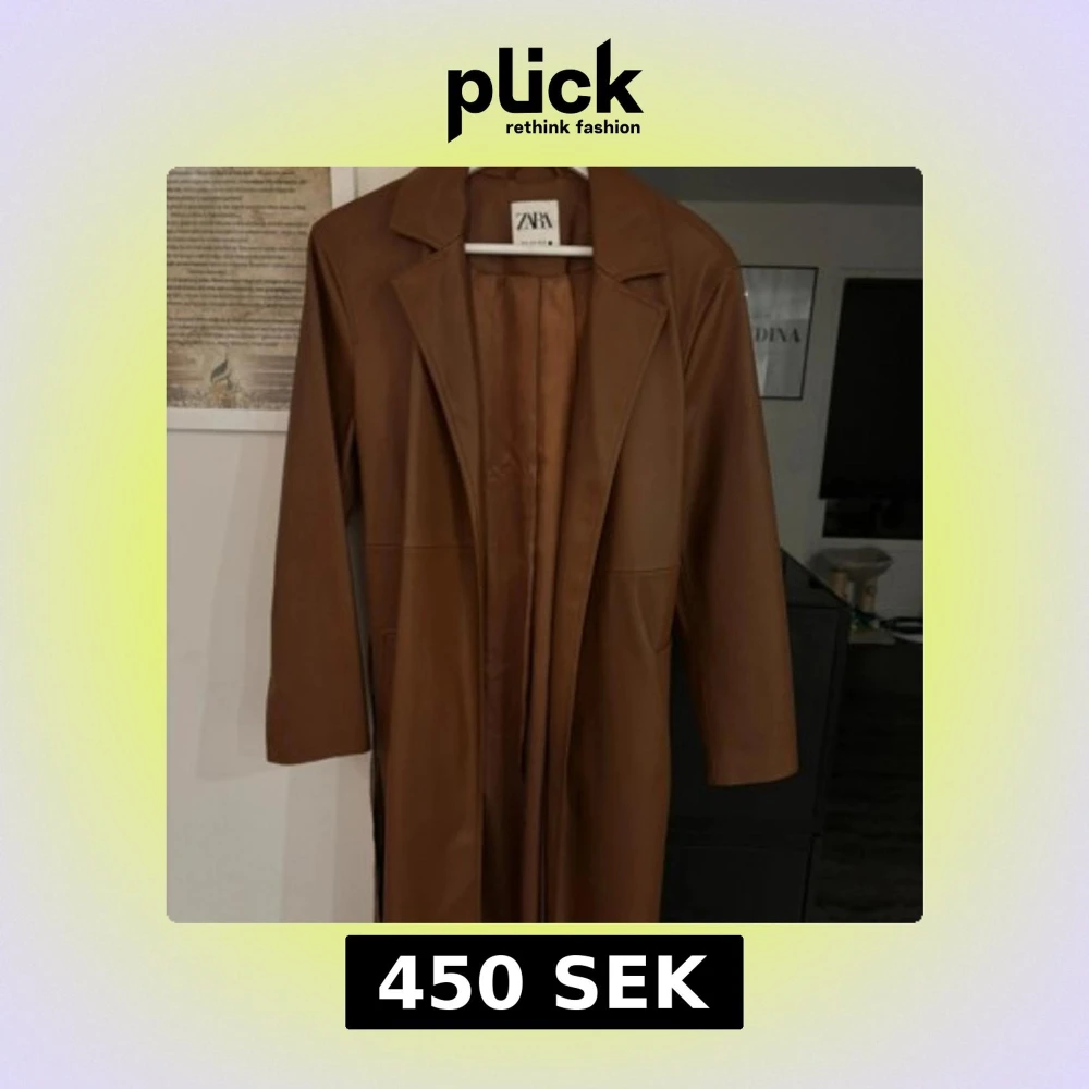 Snygg brun trenchcoat från Zara i syntetmaterial. Jackan har en klassisk design med knytbälte i midjan och långa ärmar. Perfekt för höst och vår.