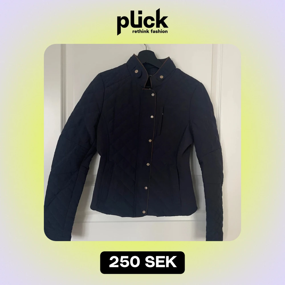 Säljer en snygg svart quiltad jacka från Zara. Den har en stilren design med knappar och en hög krage. Perfekt för höst och vår, och ger en elegant look. Jackan är i mycket bra skick och passar till både vardag och fest.