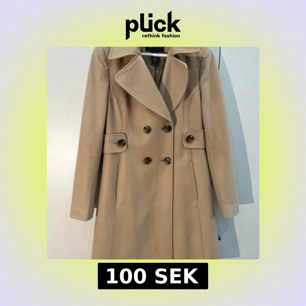 Snygg beige kappa från Zara med dubbelknäppning och bred krage. Jackan har långa ärmar och dekorativa knappar vid midjan. Perfekt för dig som gillar klassisk stil med modern touch.