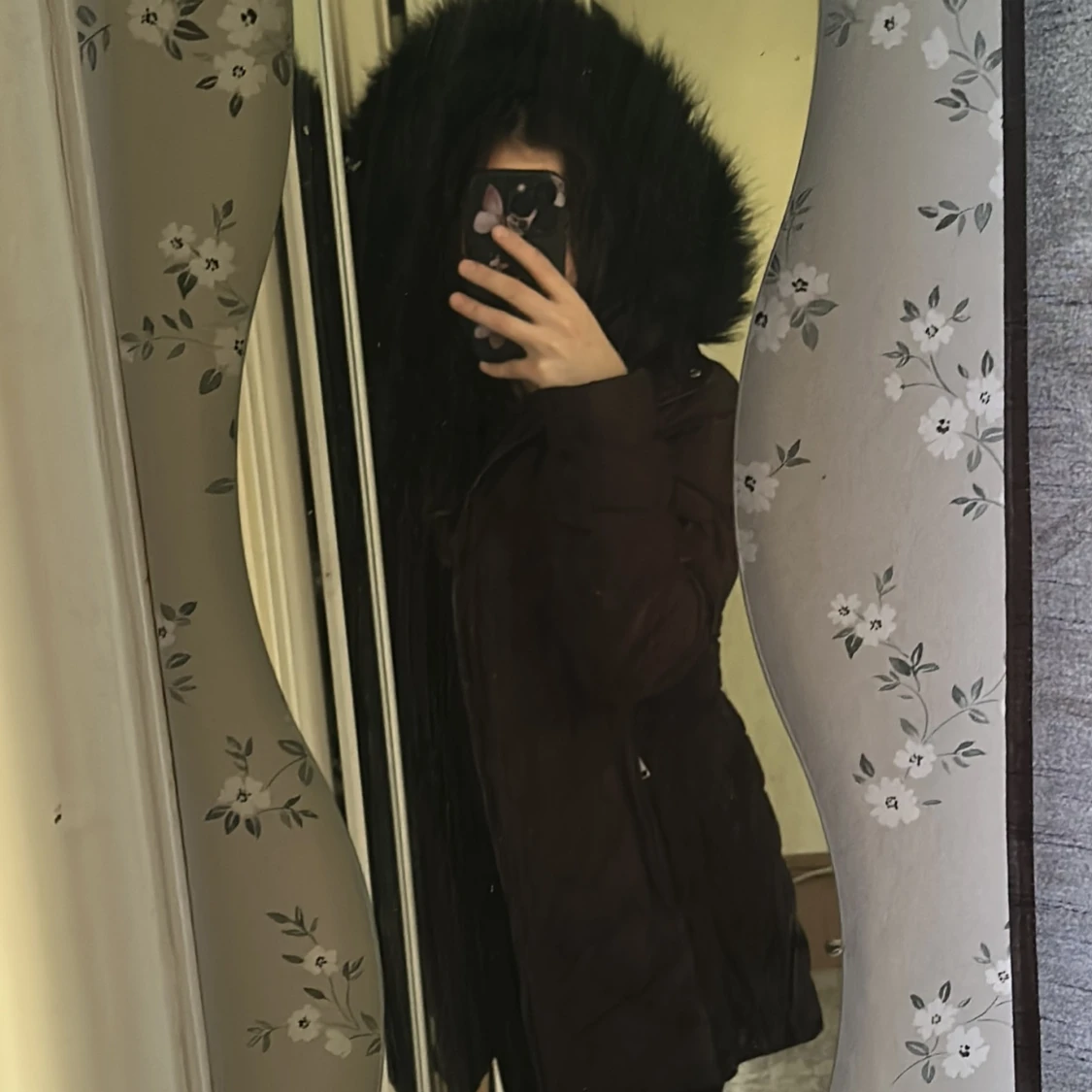 Nice vinter jacka passar för dem som är 158-162 (S storlek) Det har fuskpäls insidan av luvan och jackan.