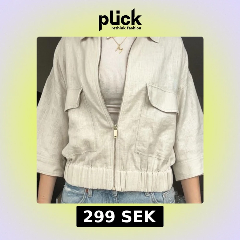 Snygg beige overshirt med dragkedja framtill, två stora bröstfickor med lock och resår i midjan. Jackan har trekvartsärmar och är tillverkad i ett lätt linneliknande material. Perfekt för lager-på-lager och chill stil. som ny, köpt i augusti och aldrig använts. därför i väldigt bra skick.