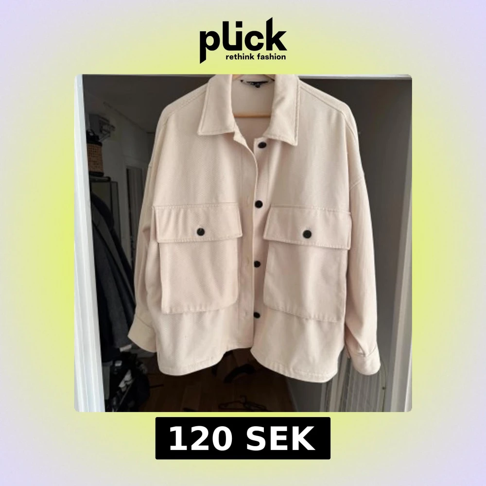 Stilren beige overshirt från Zara med stora bröstfickor och svarta knappar. Jackan har en rak, loose passform och är tillverkad i ett kraftigare bomullstyg. Perfekt att slänga över en hoodie eller t-shirt för en avslappnad look.