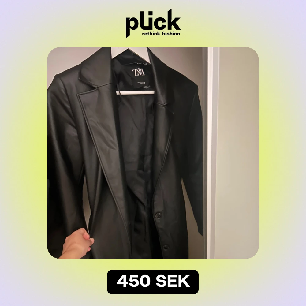 Säljer en snygg svart skinnkappa från Zara i mycket bra skick. Den har en klassisk design med knappar och ett bälte i midjan för en stilren look. Perfekt för höst och vår, och funkar både till vardags och fest. Storlek S/M.❤️