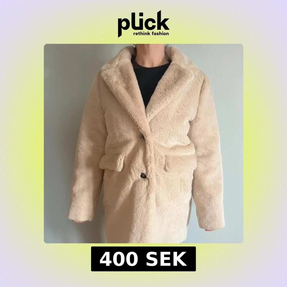 Säljer en mysig beige pälsjacka med långa ärmar och knappar framtill. Jackan har en klassisk krage och två fickor på sidorna. Perfekt för kyliga dagar. Barn storlek, men sitter som en S