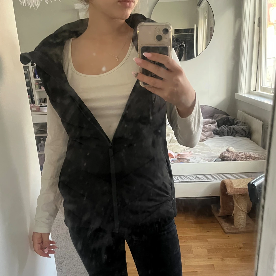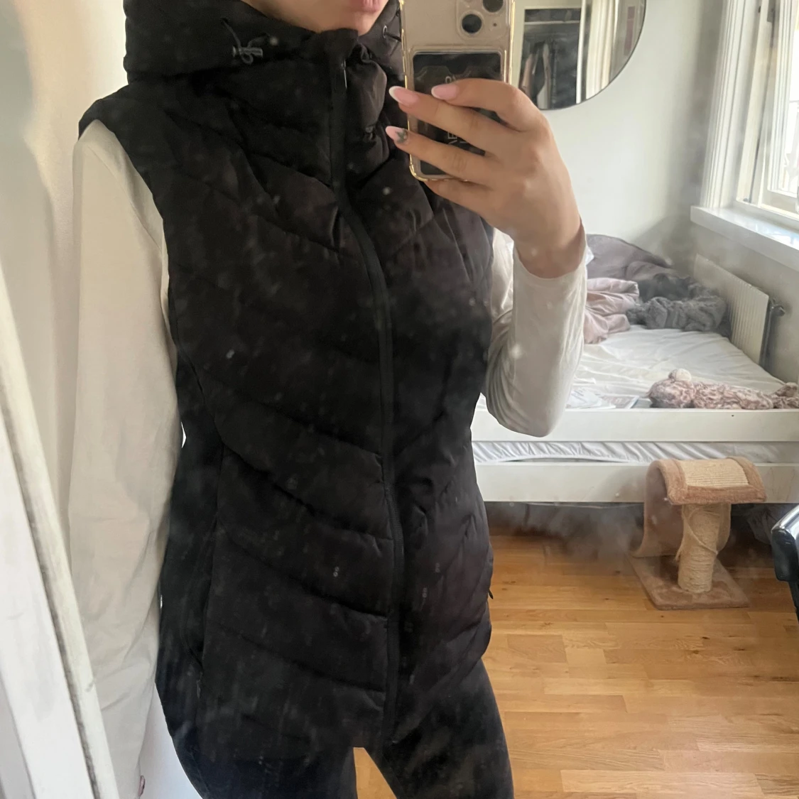 Svart dunväst från Zara i storlek S. Den formar sig väldigt fint efter kroppen. Den är också väldigt skön och varm.