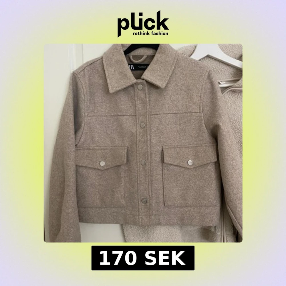 Stilren beige kapp från Zara med stora fickor framtill och tryckknappar. Jackan har klassisk krage och är tillverkad i ett mjukt ullblandat material. Perfekt för lager-på-lager och enkel att matcha med det mesta.