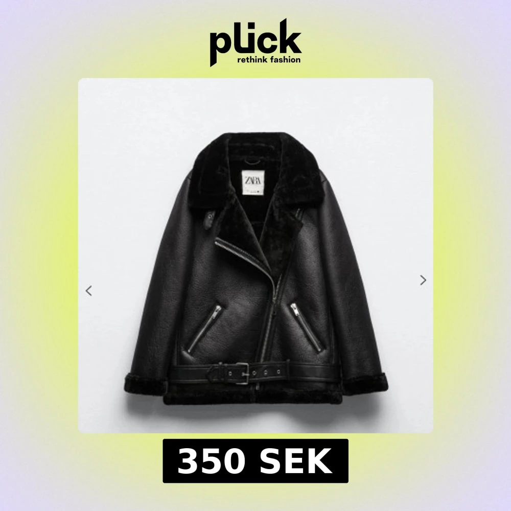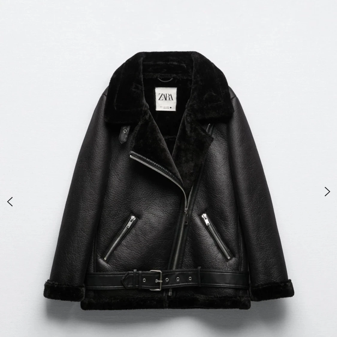 Snygg svart pälsjacka från Zara med bred krage, dragkedjor och bälte i midjan. Jackan har mjukt foder och detaljer i skinnimitation, perfekt för kalla dagar. Stilsäker look med coola metalldetaljer och två fickor framtill.