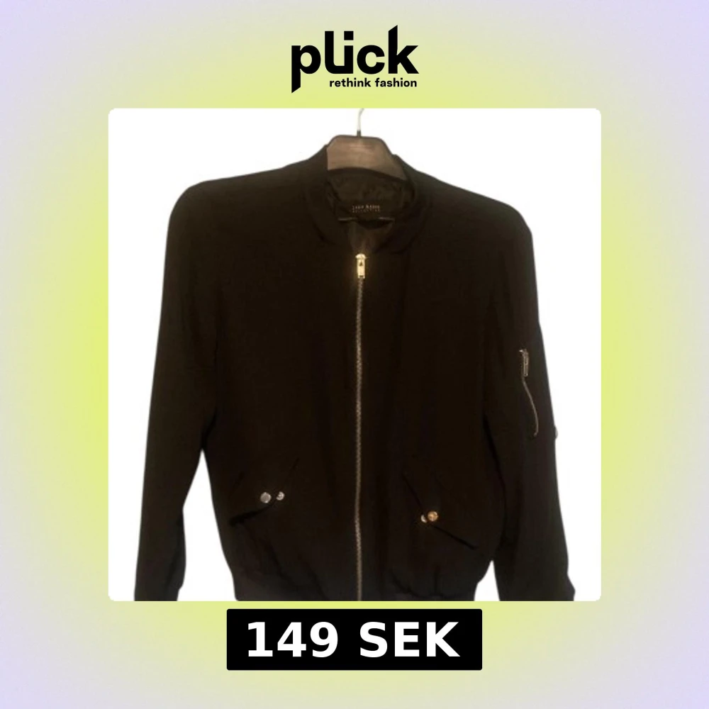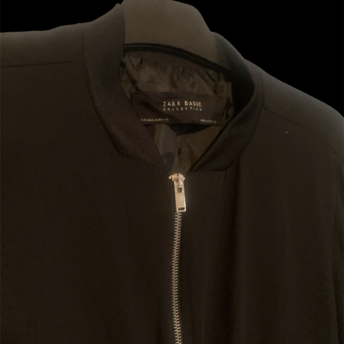 Svart bomberjacka från Zara Basic med klassisk siluett, dragkedja framtill och fickor med tryckknappar. Jackan har ribbade muddar och en extra ficka med dragkedja på ärmen. Perfekt för dig som gillar en clean och stilren look.