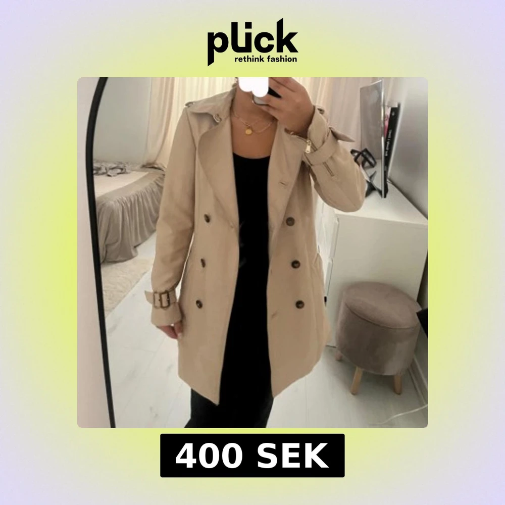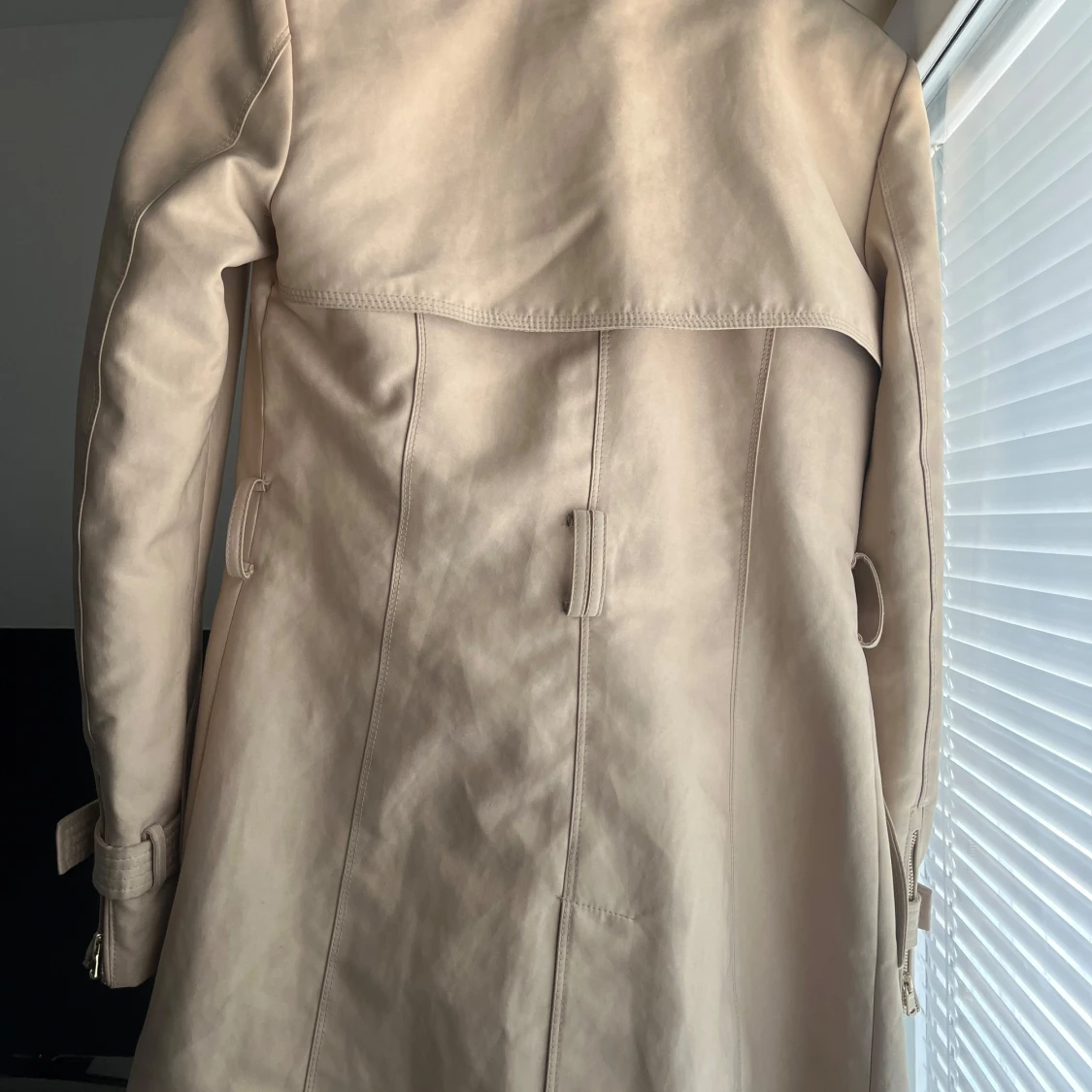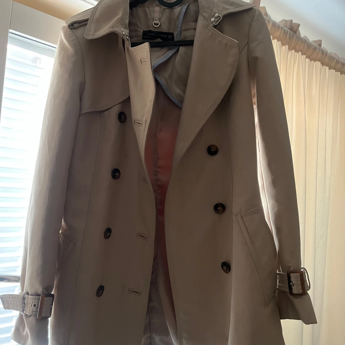 Stilren beige trenchcoat från Zara Woman med dubbelknäppning, klassisk krage och bälte i midjan samt vid ärmslut. Jackan har snygga detaljer som axelklaffar och fickor framtill. Perfekt för dig som vill ha en tidlös och trendig look.