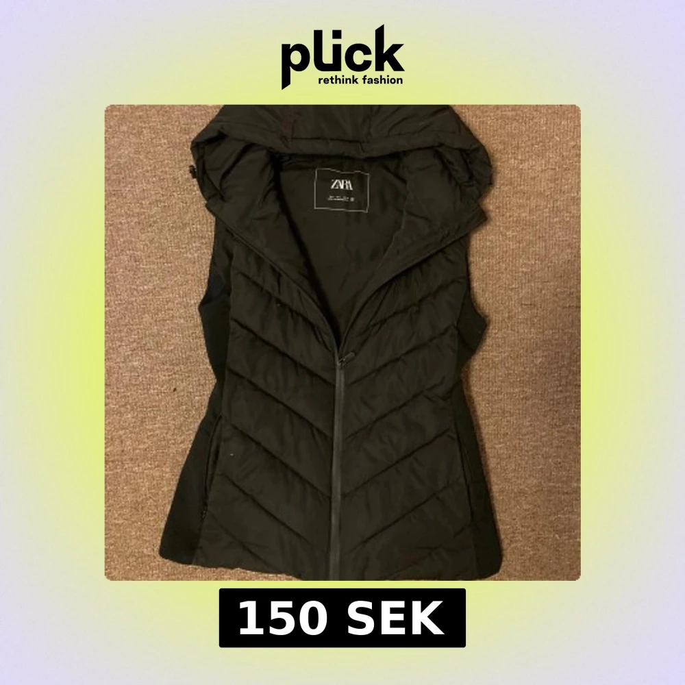 Svart Zara väst med huva och snyggt quiltat mönster. Perfekt nu under hösten när det är lite kyligt ute.
