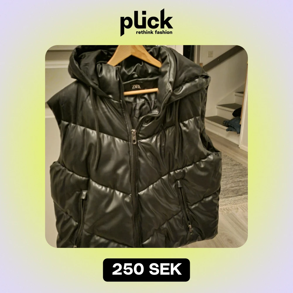Svart ZARA vinterväst typ skinnimitation vind o vatten avisande material stl S jättefint skick