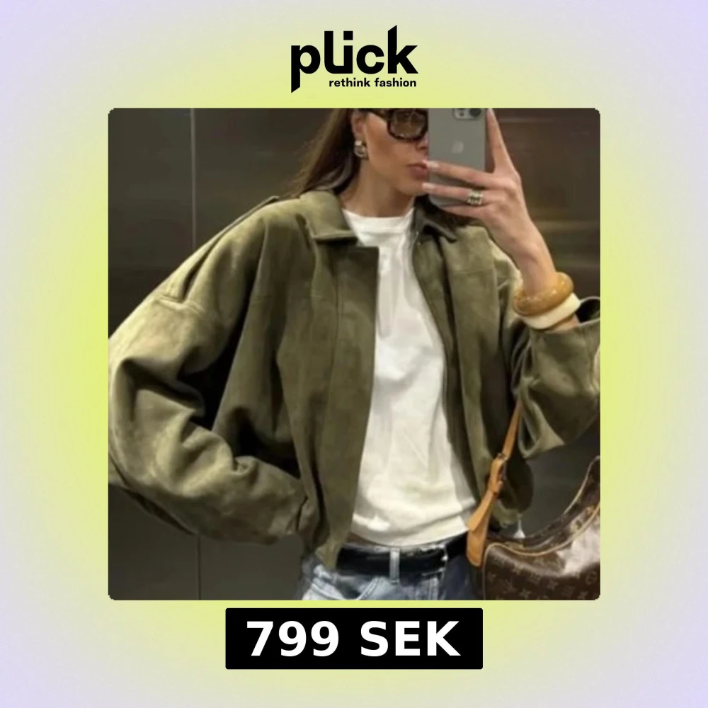 Säljer den virala ZARA mockajackan i färgen Kahki grön. Jackan har klassisk krage, dragkedja framtill och detaljer vid axlarna. Aldrig använd 🧥.