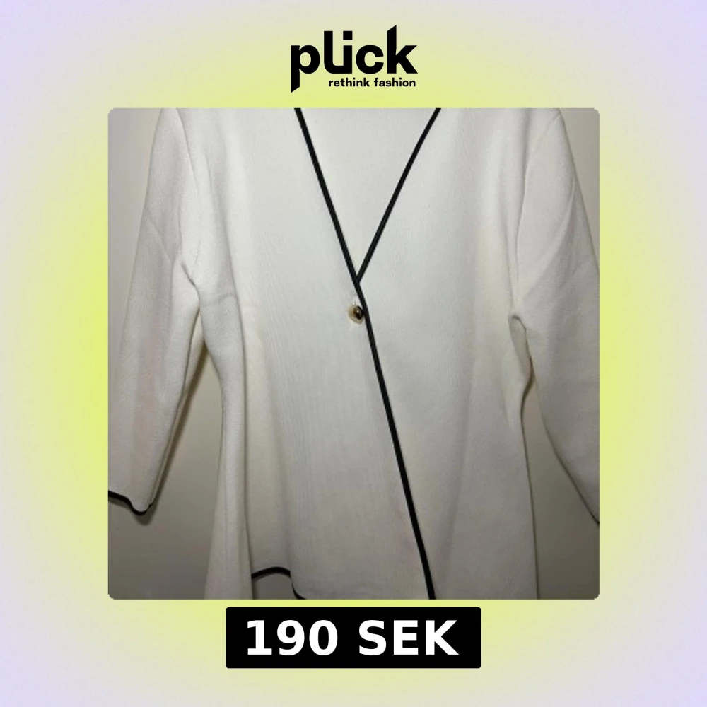 Elegant vit omlottkavaj från Zara med svarta kanter och en knappdetalj framtill. Kavajen har 3/4 långa ärmar och en stilren design som passar perfekt för en chic look.
