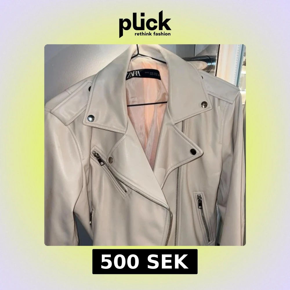 Snygg beige skinnjacka från Zara i storlek XL. Jackan har klassisk bikerstil med bred krage, silverfärgade dragkedjor och tryckknappar. Materialet är mjukt syntetskinn och jackan har flera fickor med dragkedja för extra edge. Det är XL men väldigt liten i storleken i vanliga fall har jag XS- S. Så den passar väldigt bra för någon som har mellan XS- S