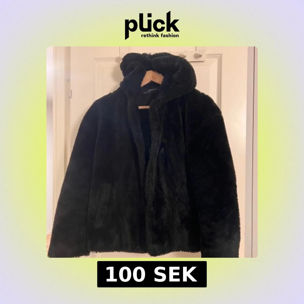 Mjuk och fluffig svart pälsjacka från Zara Basic i storlek XS. Jackan har en stor huva och raka, långa ärmar. Perfekt för kalla dagar när du vill vara både varm och snygg. Fodrad insida och diskreta fickor på sidorna.