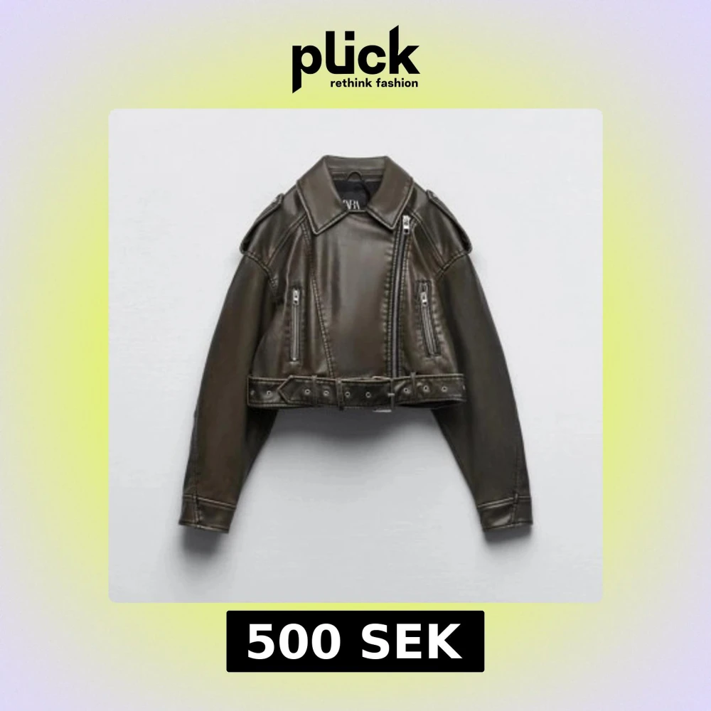 Säljer en svart croppad skinnjacka från Zara med coola detaljer som bälte i midjan, dragkedjor och bred krage. Jackan har långa ärmar och en snygg asymmetrisk dragkedja framtill. Perfekt för dig som vill ha en edgy look.
