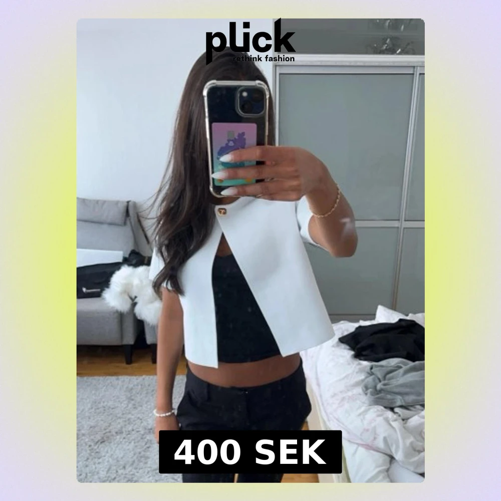 Säljer en stilren vit kofta från zara med kort ärm och en snygg guldig knapp upptill. Jackan är croppad och har en rak passform som ger en modern look. Perfekt att slänga över ett linne eller t-shirt för en clean och fräsch outfit. Går ej att köpa mer!💕