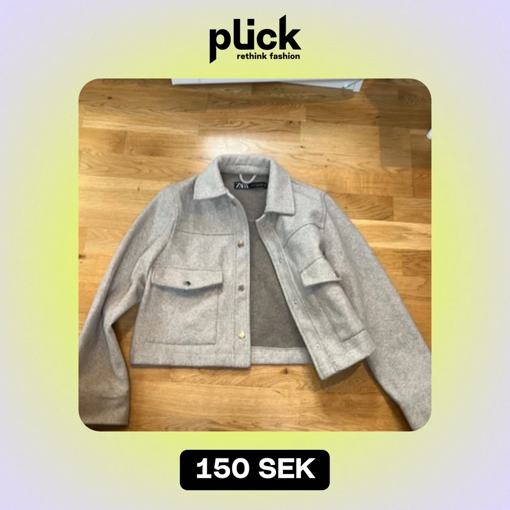 Säljer en snygg grå kort kappa från Zara. Den har en klassisk krage och stängs med knappar framtill. Jackan har två stora fickor på bröstet som ger en cool look. Perfekt för höst och vår!