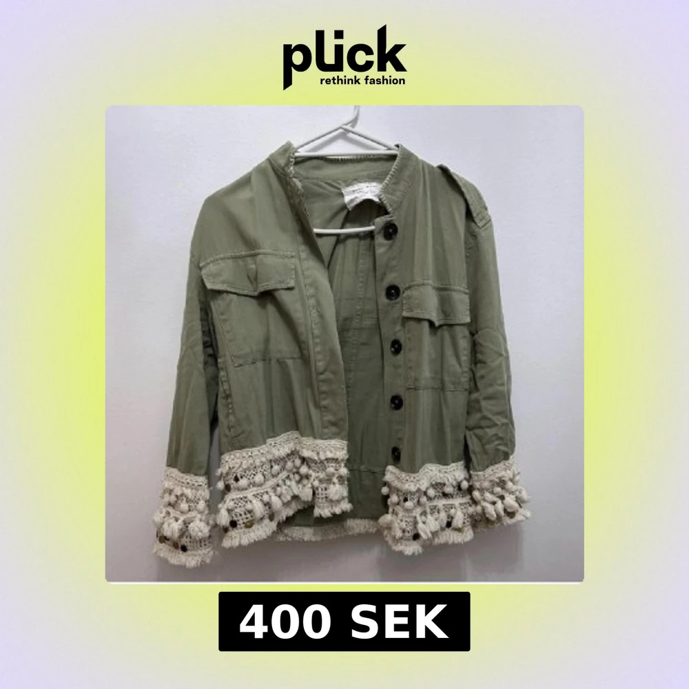 Pris kan diskuteras❣️ Snygg grön jacka med dekorativa virkade spetsdetaljer och tofsar längs ärmslut och nederkant. Jackan har knappar framtill, två bröstfickor och lång ärm. Perfekt för dig som vill sticka ut med en unik stil.