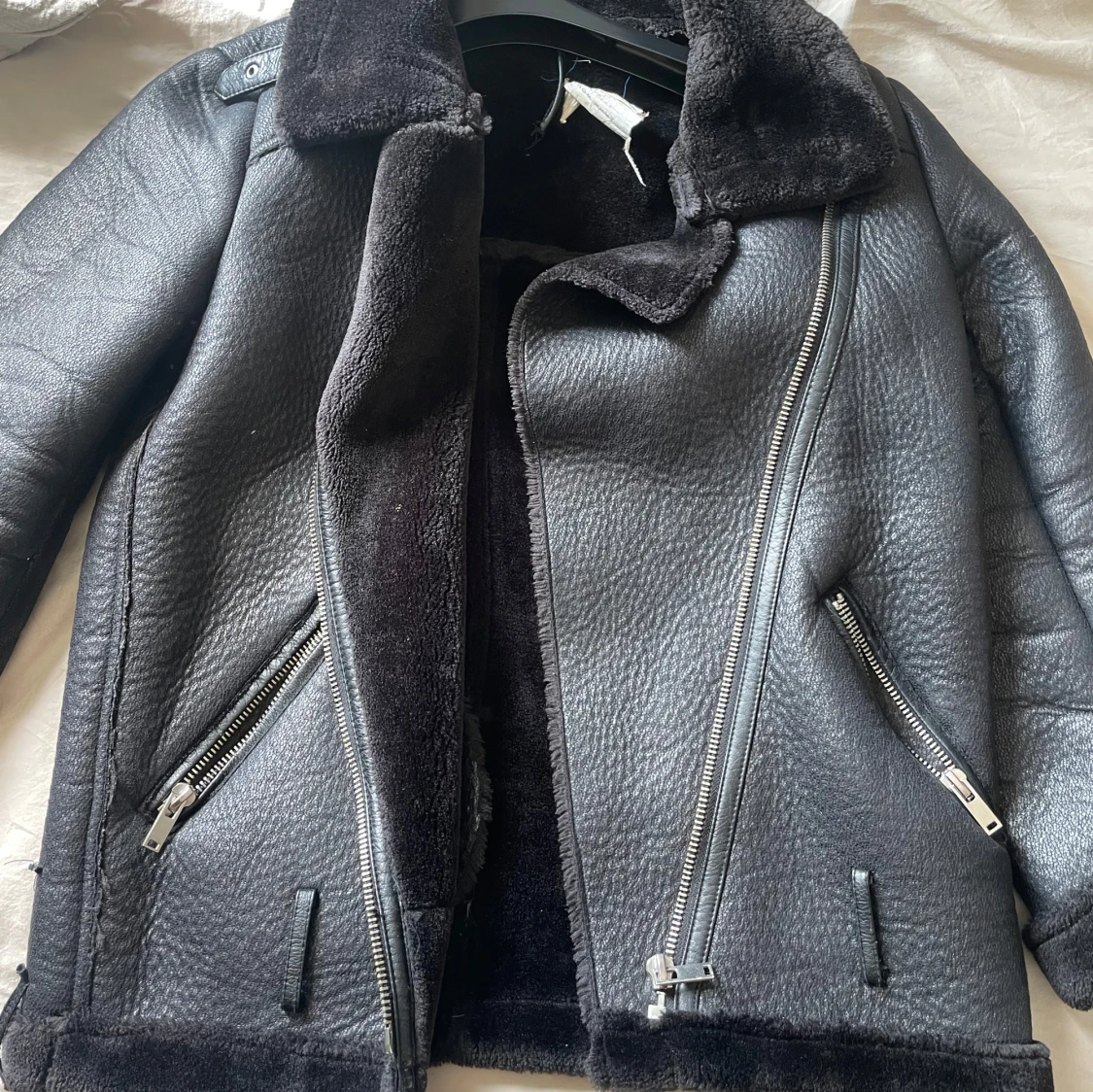 Svart jacka från Zara i läder, stor i passformen så passar även s och m