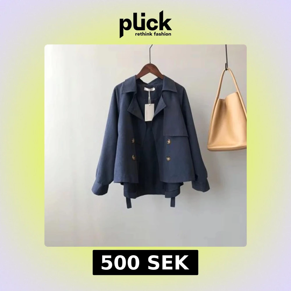 Snygg mörkblå trench jacka med dubbelknäppning och bred krage. Perfekt för en stilren look. Jackan har långa ärmar och en klassisk design som funkar till många tillfällen.