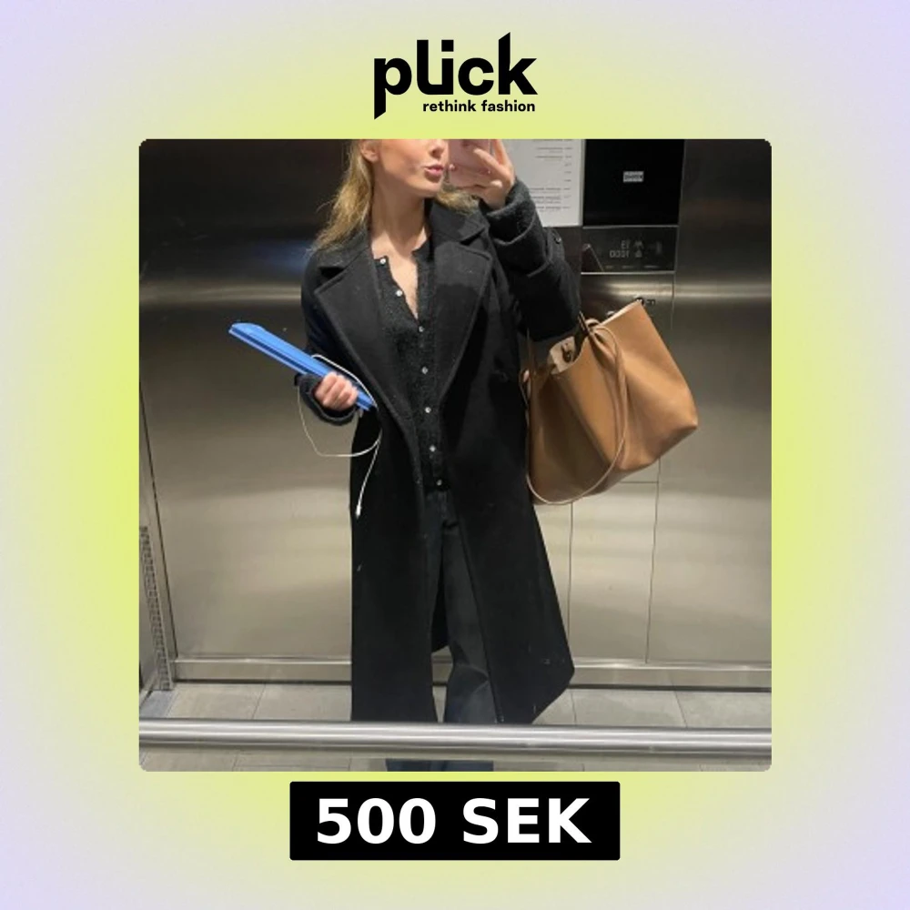 Säljer en svart lång kappa med breda slag och dubbelknäppning. Snygg och tidlös modell med rak passform och diskreta fickor. Perfekt för dig som vill ha en stilren look under höst och vinter. Passar till allt och ger en clean vibe.