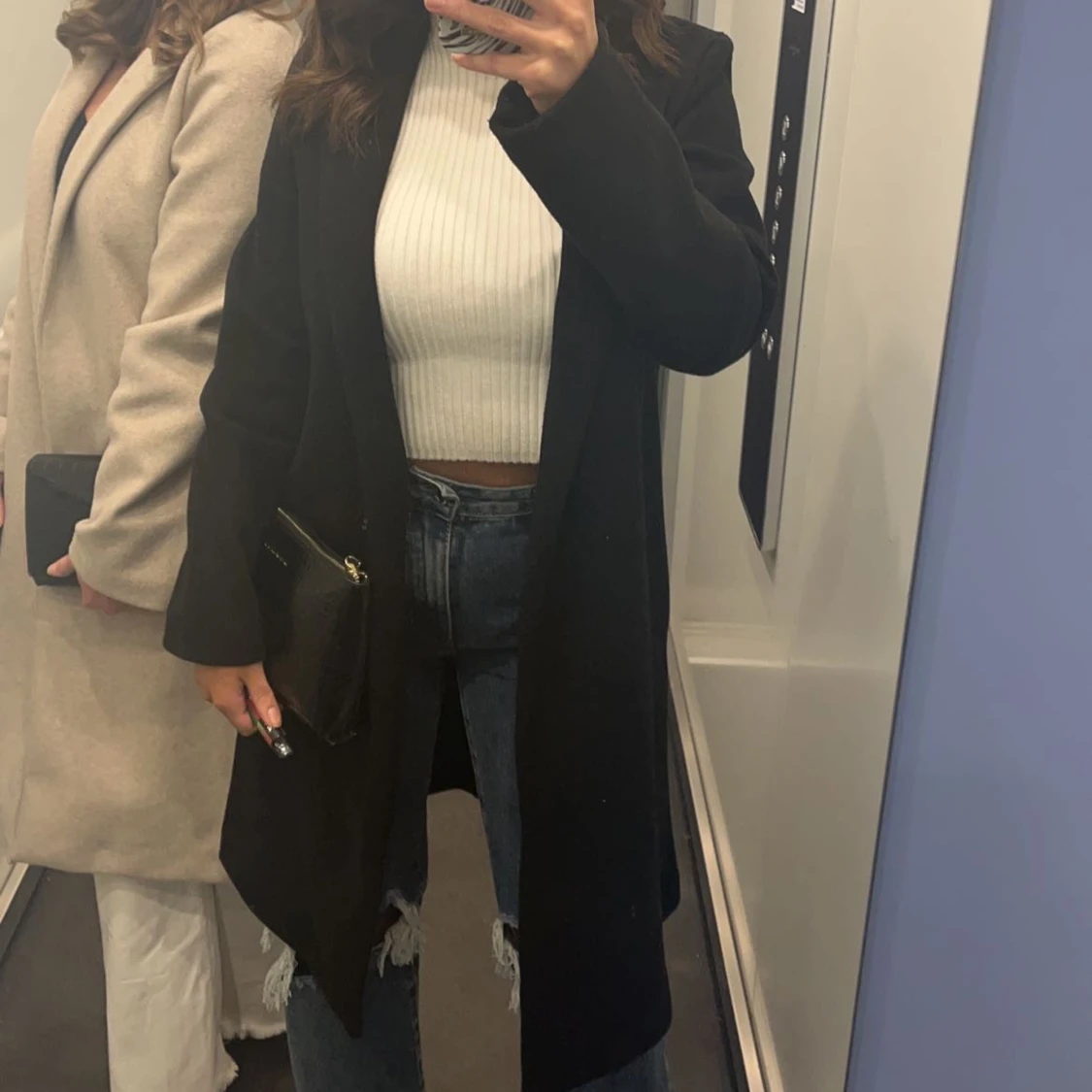 Säljer denna svarta kappa ifrån zara i storlek ca. Den är så stilren och fräsch och går att klä upp och ner. Köpt för ca 500kr säljer för 250kr