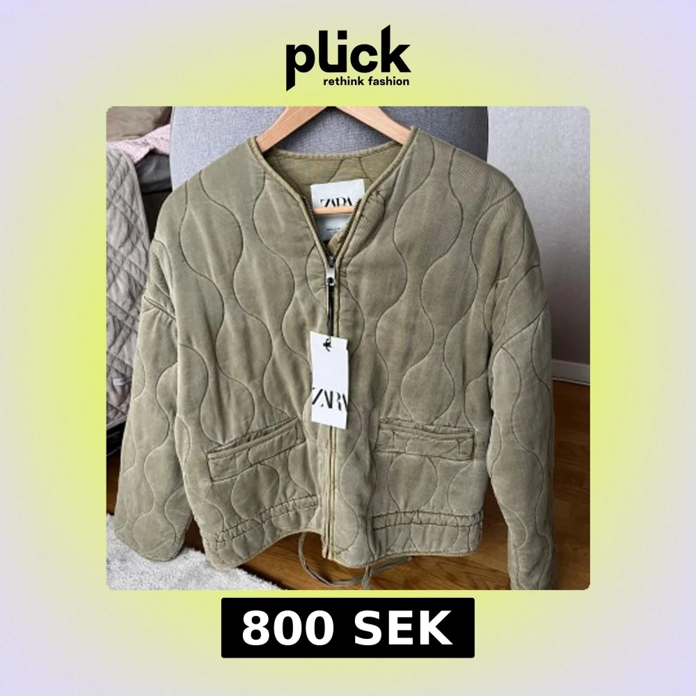 Säljer en olivgrön quiltad jacka från Zara med dragkedja framtill. Jackan har en unik vågig quiltning och två fickor. Den är aldrig använd med lappen kvar i storlek XS