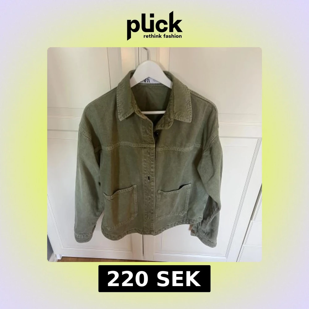 Snygg grön overshirt från Zara i bomull. Jackan har klassisk krage, stora fickor framtill och knäppning med knappar. Perfekt att slänga över en hoodie eller t-shirt för en chill look.
