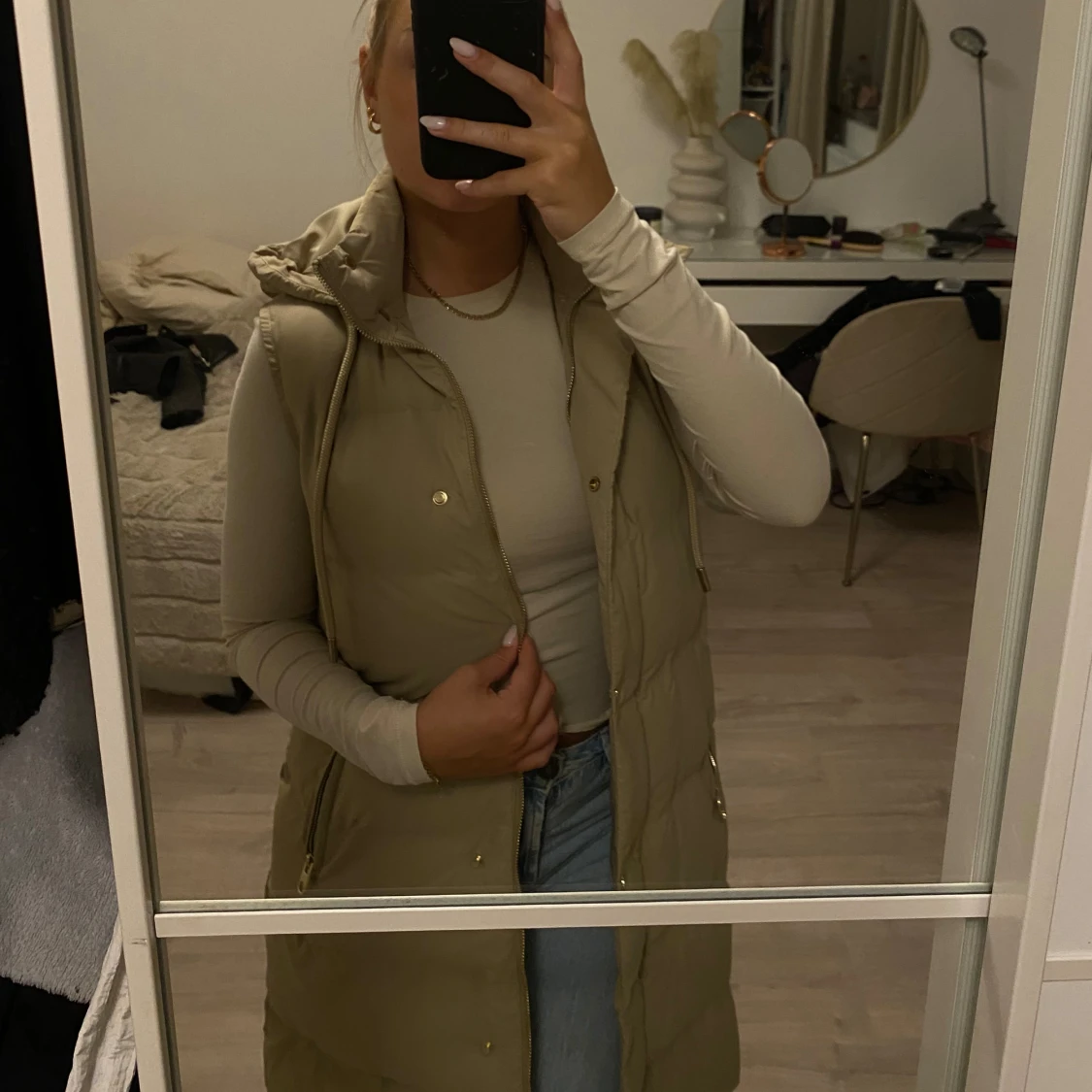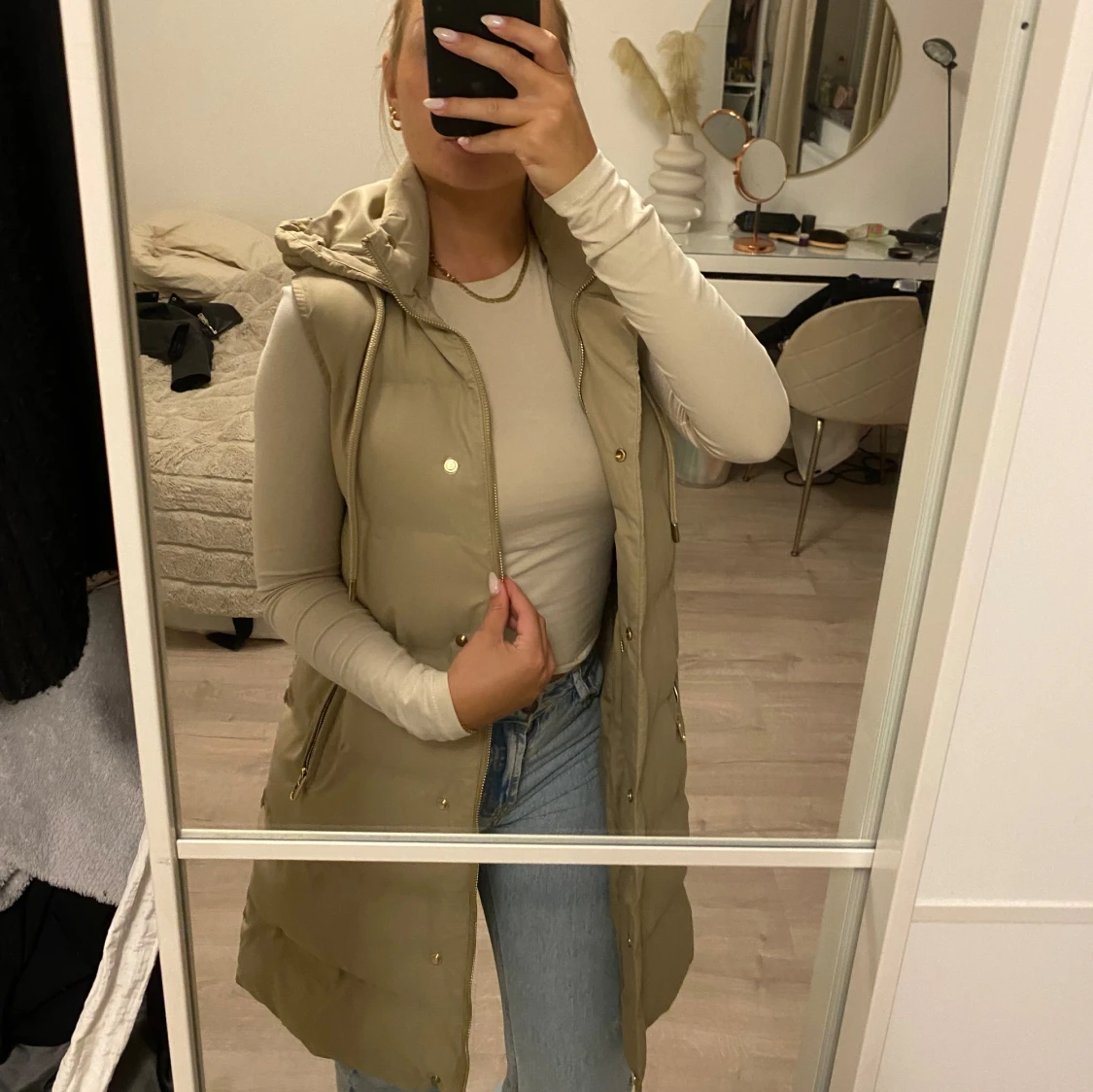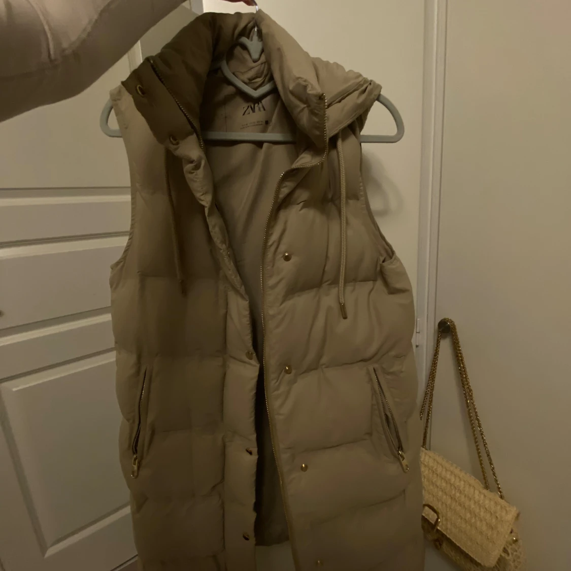 Snygg väst från Zara i en grön/grå/beige färg med guldiga detaljer. Endast använd ett fåtal gånger