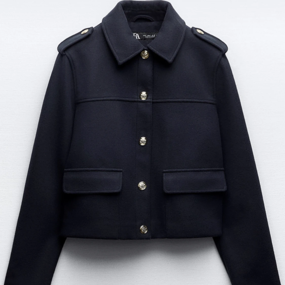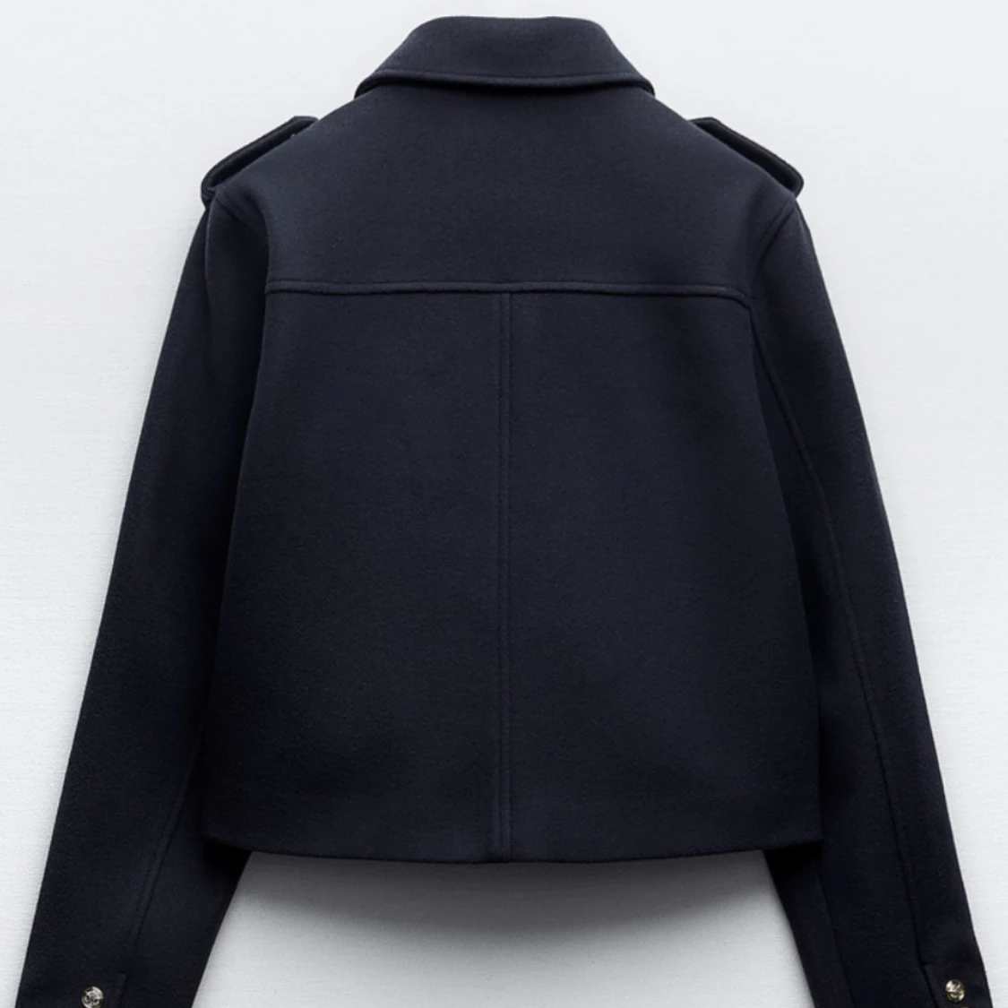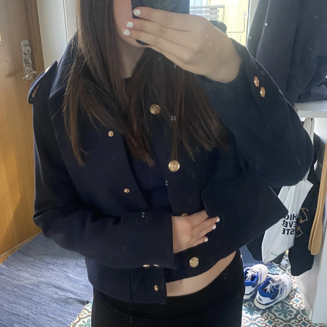 En mörkblå kappa från zara. Använd ett fåtals gånger och har inga defekter!