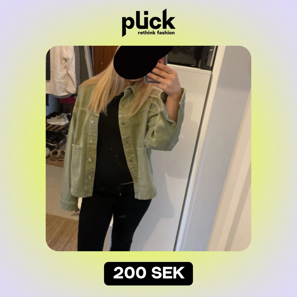 Säljer en snygg grön jeansjacka i mycket bra skick. Jackan har en avslappnad passform med knappar framtill och två stora fickor. Perfekt för vår och höst! 🧥💚