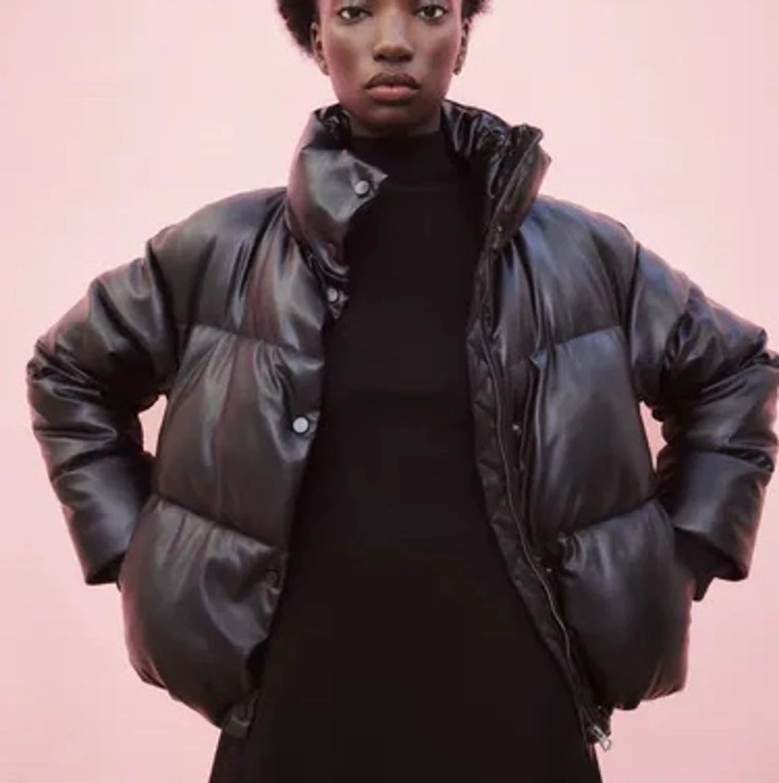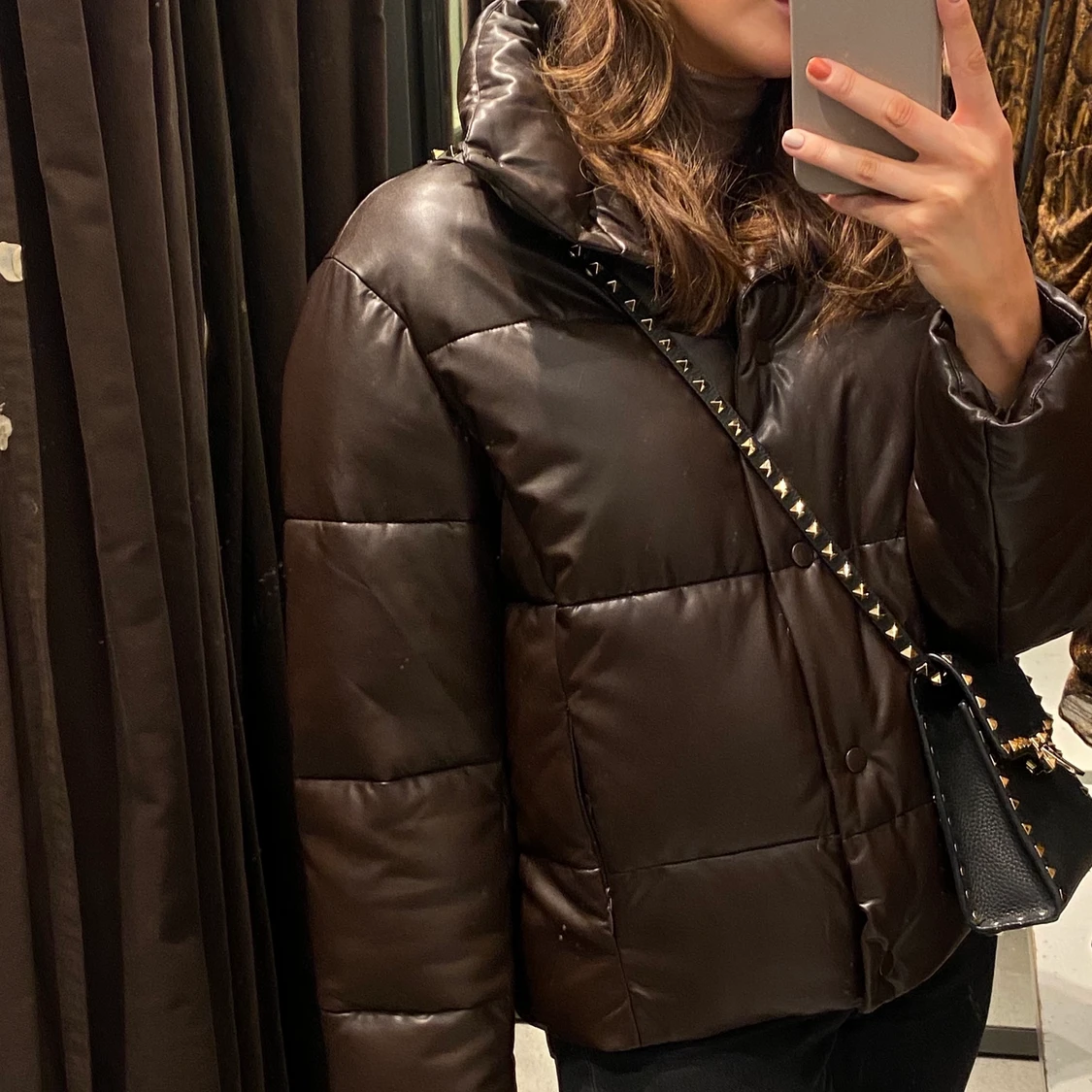 Brun pufferjacka i skinn från zara