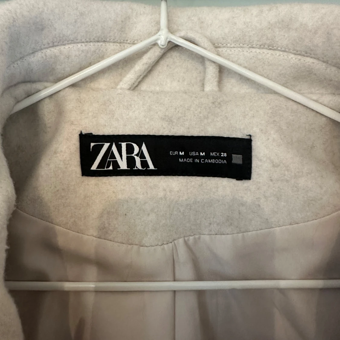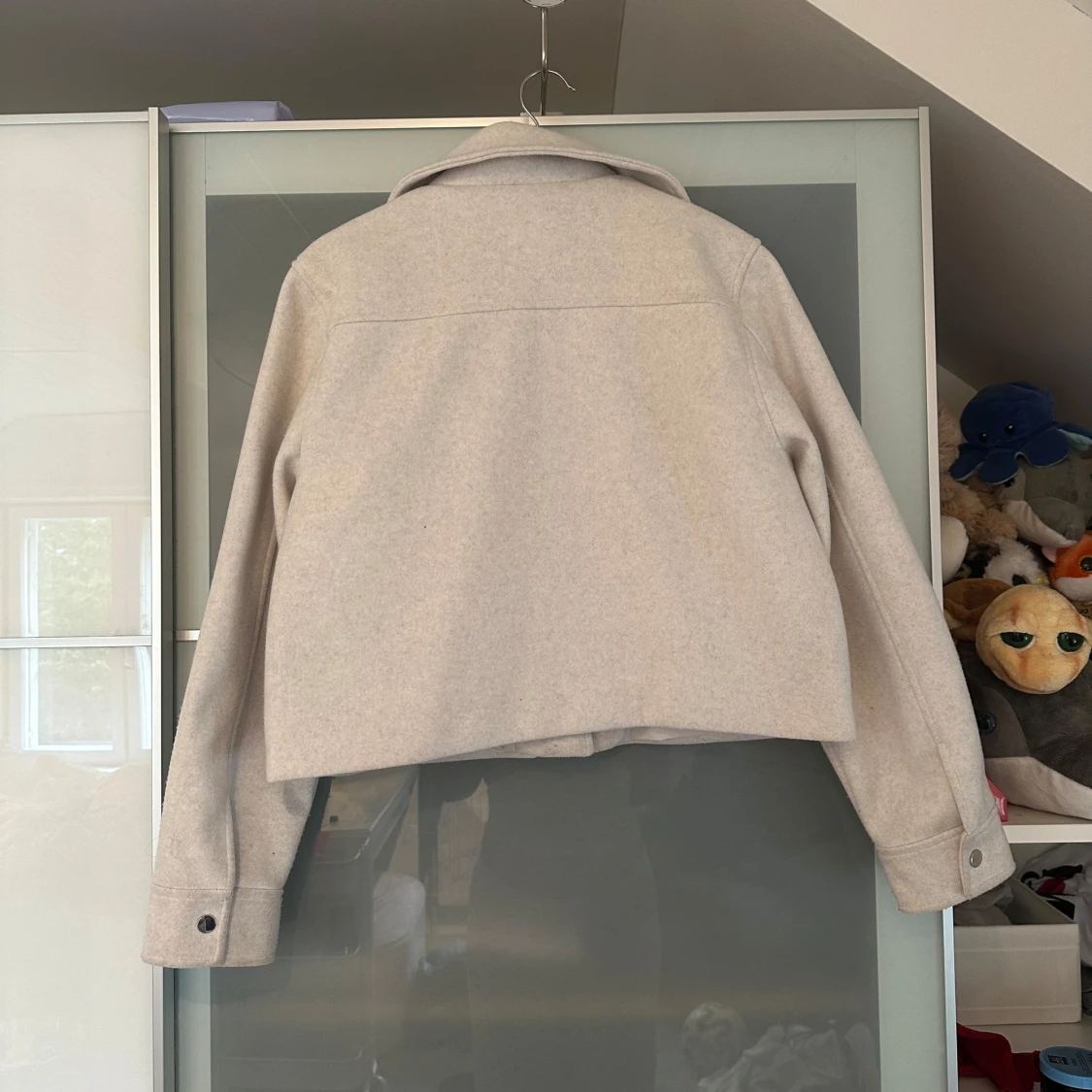 Säljer en beige croppad jacka från Zara med klassisk krage och stora fickor framtill. Jackan har långa ärmar, knappar och är tillverkad i ett ull-liknande material. Perfekt för lager-på-lager-stil under kyligare dagar men även perfekt nu till sommaren. Använd en gång så den är som ny och har inga defekter. Pris kan diskuteras