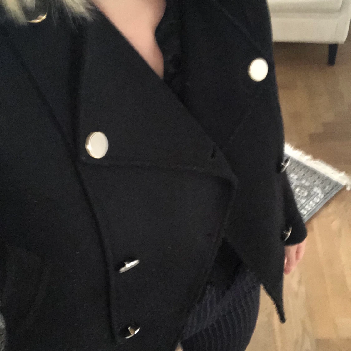 Superfin kappa från zara med guldknappar. Har varit ett hål i ena fickan men som är lagat. Köparen betalar frakt
