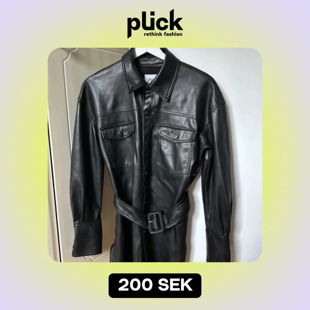 Säljer min fina läder/skinnjacka från Zara. Jättefint skick och används inte. Slitsar på sidorna och knytband i midjan. Snygg att ha i höst🍂 Skriv vid funderingar