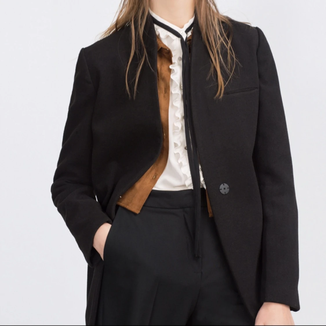 Fin kappa från Zara. Oanvänd med tag kvar! Köpt på reapris 300kr (ordinariepris 700kr). Inga fickor, enbart dekorativa. 100% polyester