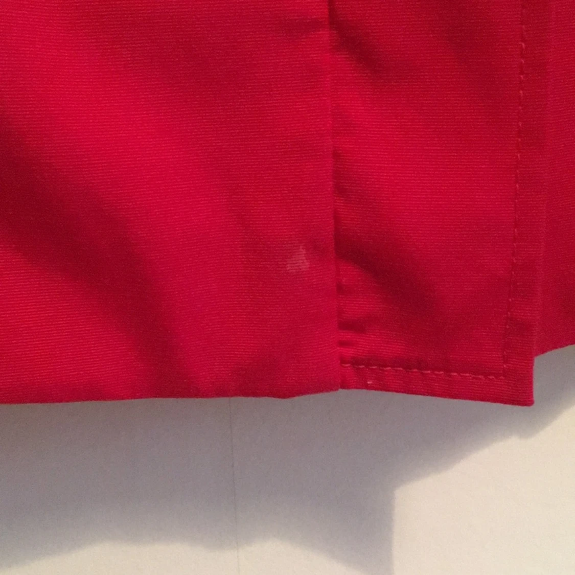 Supersöt klarröd vårjacka, klockad modell och stor krage som går att styla på många olika sätt. Använd mycket lite. Några fläckar som med största sannolikhet går bort i tvätten. Köparen står för frakten.