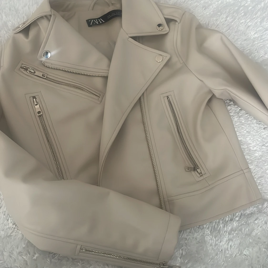 Beige skinn jacka köpt från zara i storlek S!! Säljer då den inte kommer till användning längre