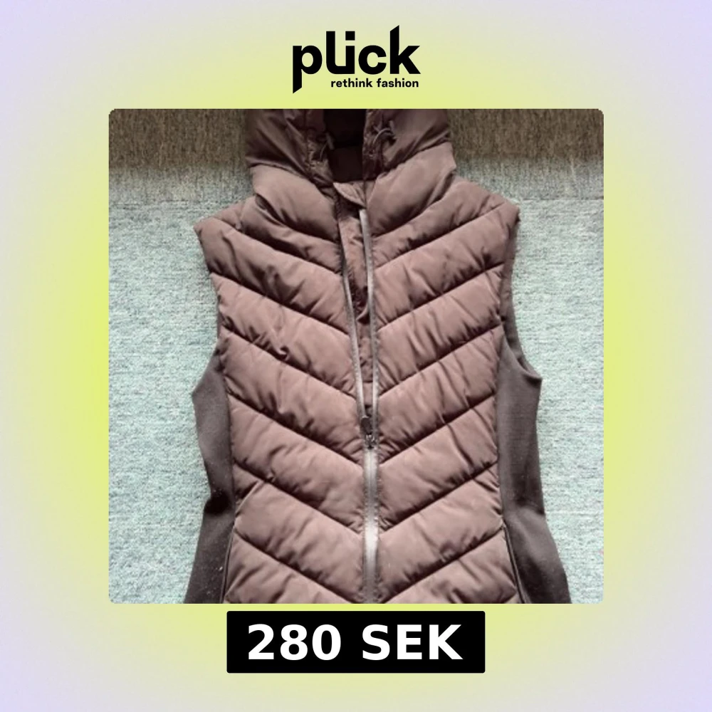 Snygg svart dunväst från Zara med huva och dragkedja framtill. Quiltad design med V-formade sömmar och mjuka sidopaneler i stretchigt material. Perfekt att slänga över en hoodie för extra värme när det är kallt ute.