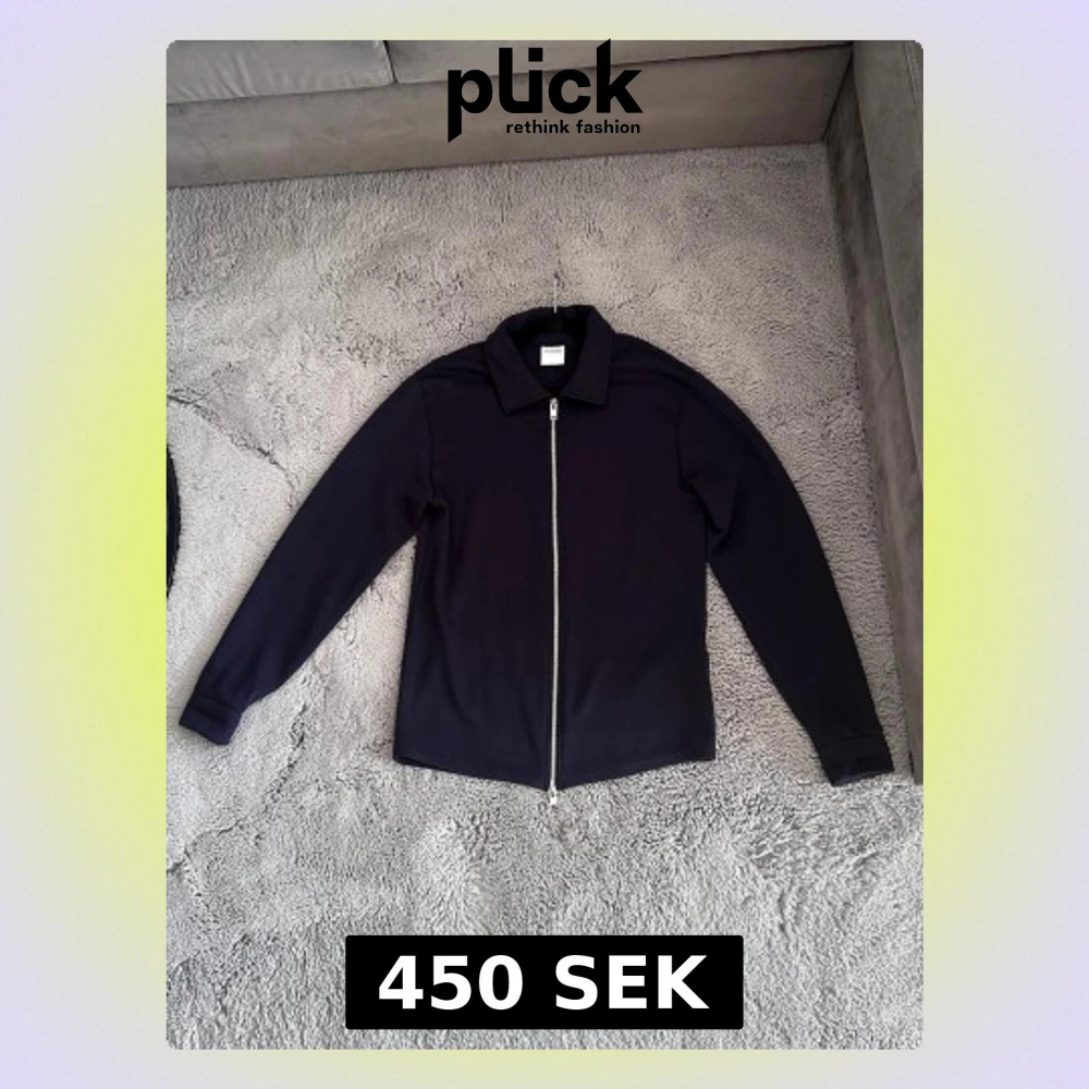 Stilren navy blue ziptröja med klassisk krage och hel dragkedja framtill. Tröjan har långa ärmar och en rak passform, perfekt för en clean och enkel look. Materialet är väldigt mjukt och skön perfekt för året runt!